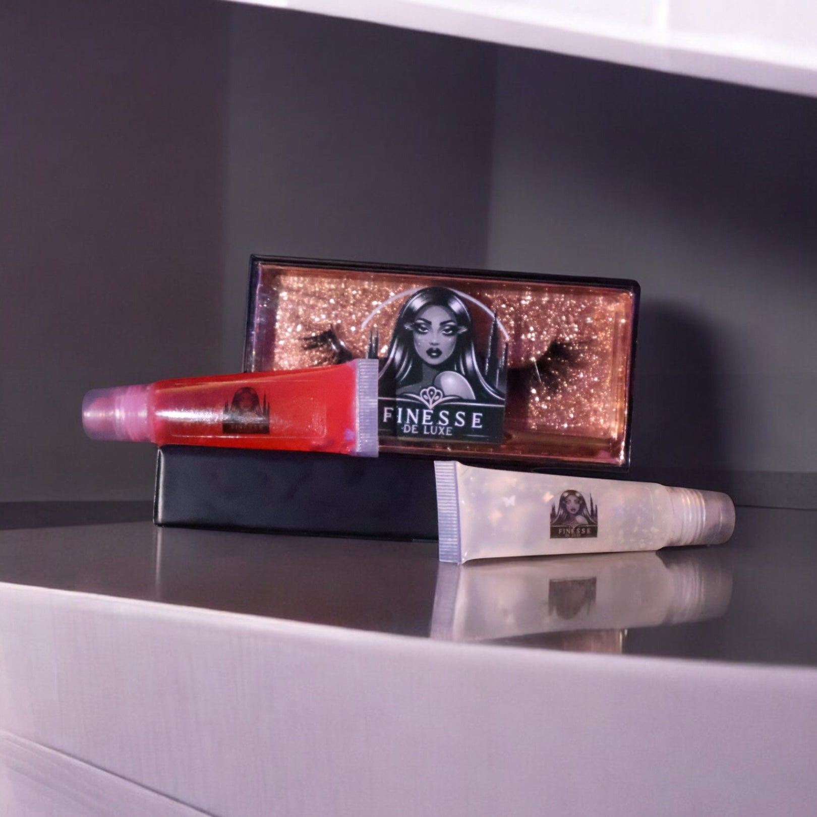 Get ready to level up your glam game with our De Luxe Bundle! This bundle includes 2 stunning lip glosses, Vanilla Me Baby and Strawberry Galore, with a pair of Pretty Galore lashes to give you the perfect pout and flirty flutter. Say goodbye to boring makeup routine and hello to de luxe beauty!